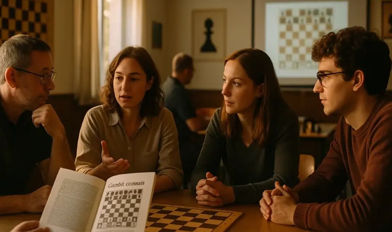 Ce mercredi 1er octobre a marquĂ© une petite nouveautĂ© dans la vie du club : lâinauguration du vidĂ©o-projecteur. Pour lâoccasion, Raymond a animĂ© un exposĂ© illustrĂ© consacrĂ© au gambit Ă©cossais. Les variantes prĂ©sentĂ©es Ă lâĂ©cran ont permis Ă chacun de suivre pas Ă pas cette ouverture dynamique, et lâattention des membres prĂ©sents a montrĂ© lâintĂ©rĂȘt suscitĂ©. Plusieurs ont dâailleurs exprimĂ© leur satisfaction Ă la fin de la sĂ©ance.